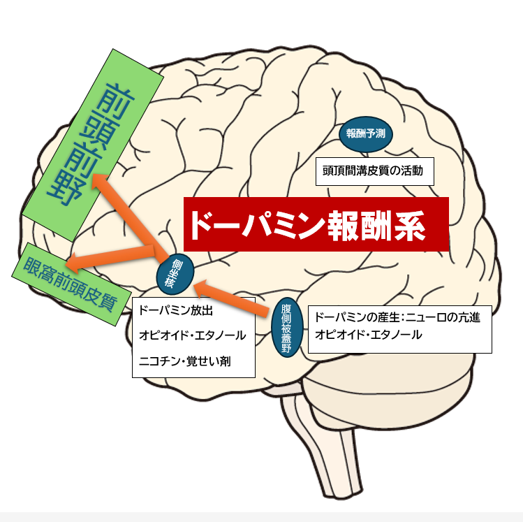 アルコール依存症は、長期的にアルコールを摂取し続けたことによって、脳の神経回路に変化が起きることが原因と考えられています。アルコールを摂取することで、多量のドーパミンが放出され、快感をもたらす反応が起こります。このため、アルコール依存症の人は、アルコールを摂取することでドーパミン放出が起こり、快感を得ることができるため、やめることが難しくなると考えられています。