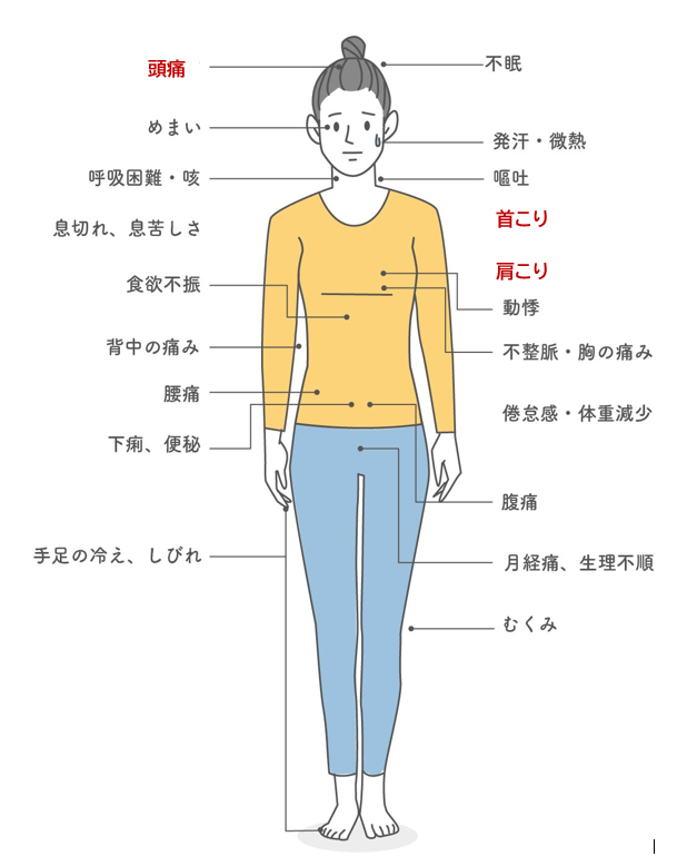 | 激しい頭痛や首・肩の痛み | 交感神経による血管収縮+筋緊張 |